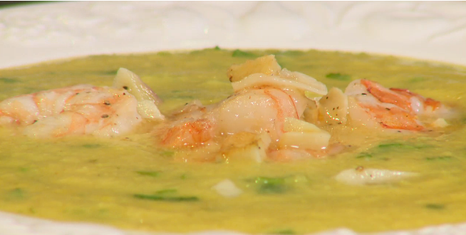 Kerrie-bloemkoolsoep met knoflookgarnalen