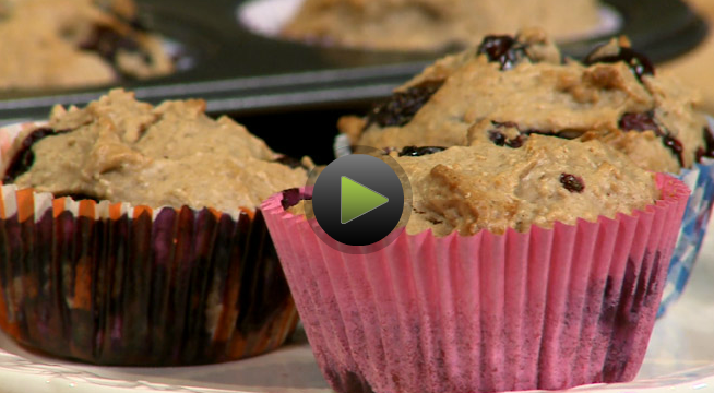 Verwarm de oven voor op 180 ºC. Zet de cupcakevormpjes in de cupcaketray.Meng in een grote kom de bloem, havermout, bruine suiker, kaneelpoeder, bakpoeder, baksoda en het zout. Halveer het vanillestokje in de lengte en schraap het merg eruit. Meng in een andere kom het vanillemerg met de olie, yoghurt en het ei. Roer goed door. Meng de droge ingrediënten met de natte ingrediënten. Rol de blauwe bessen door een beetje speltbloem en roer de blauwe bessen voorzichtig door het beslag. Verdeel het beslag over de cupcakevormpjes. Bak de cupcakes in de oven in circa 15 minuten gaar.