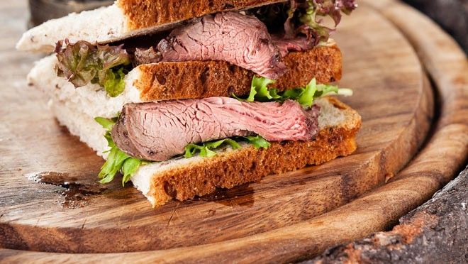 - Beleg de broden met de pastrami en verdeel de rucola erover.