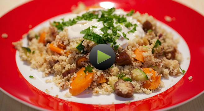 - Verdeel de dadelcouscous over borden en serveer de vijgenyoghurt erover.