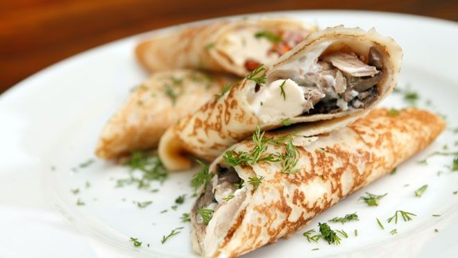 Volkoren pannenkoeken met pittige kip