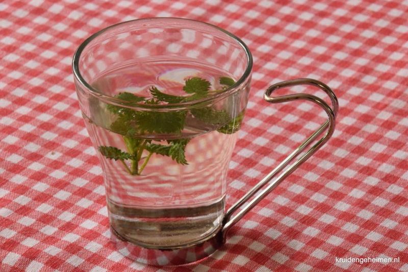 De thee is niet moeilijk om te maken. In plaats van een theezakje gebruik je een takje met brandnetels. Laat het ongeveer 10 minuten trekken.